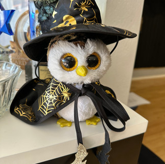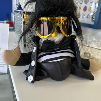 Owliver loves dressing up for the occasion, and he has some fun costumes. For our recent successful Sci Fi showcase he had on a silver spacesuit, he has a number of Halloween costumes, dresses appropriately for the 4th of July, and is currently dressed in 50's gear ready for our 5 year anniversary party.